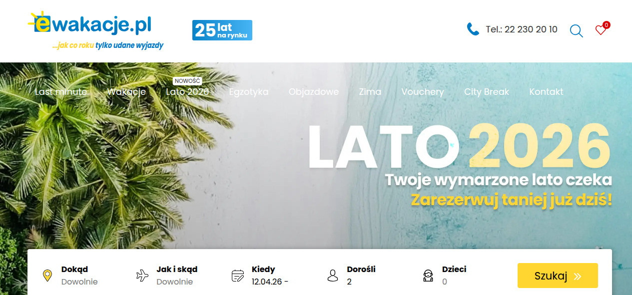 eWakacje.pl oferuje szeroki wybór wczasów last minute, dostosowanych do różnych potrzeb i preferencji podróżnych. Dzięki 25-letniemu doświadczeniu na rynku, firma